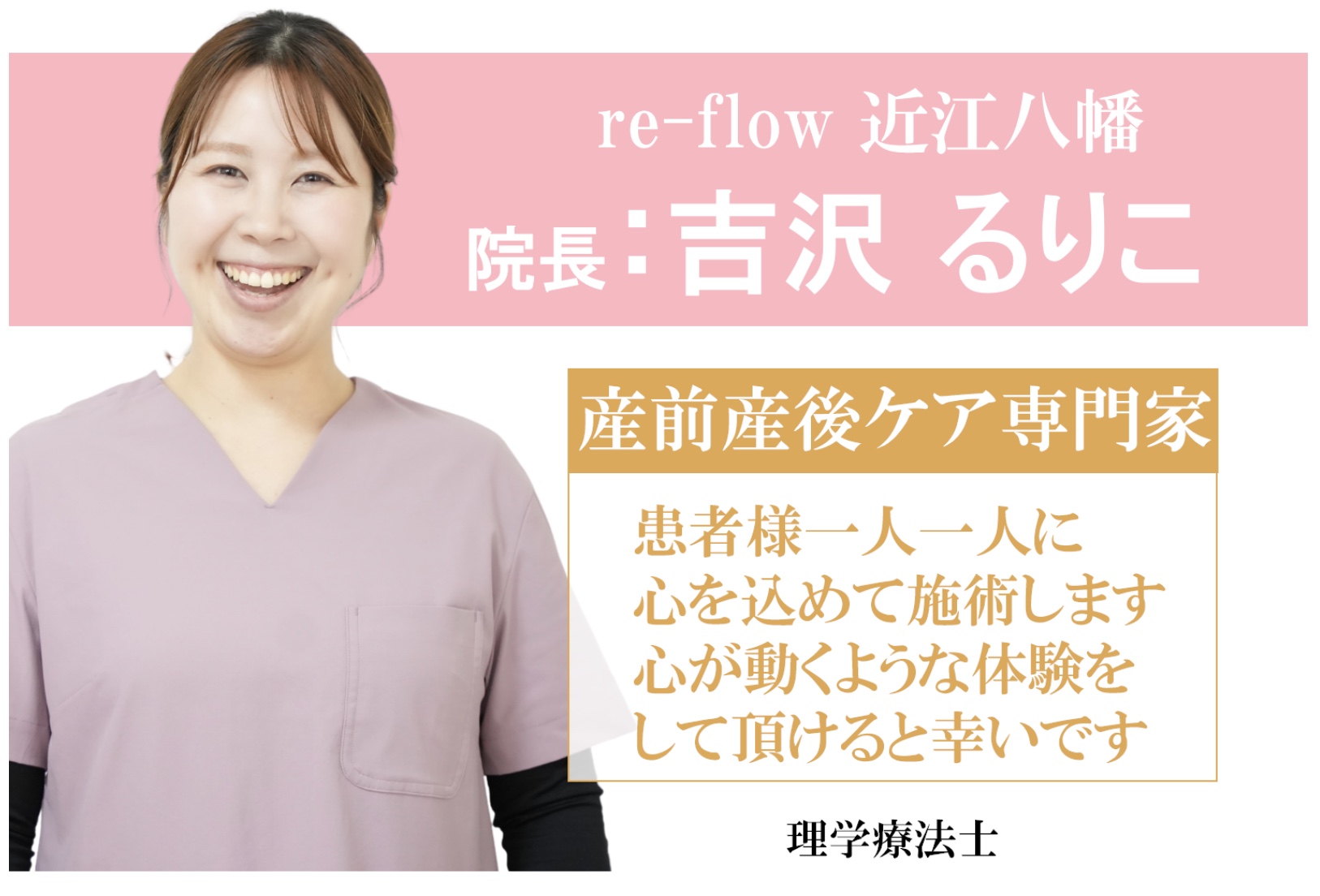 あらためまして!産後骨盤矯正・マタニティ専門の整体サロン re-flow リフロー 近江八幡の吉沢るりこです。